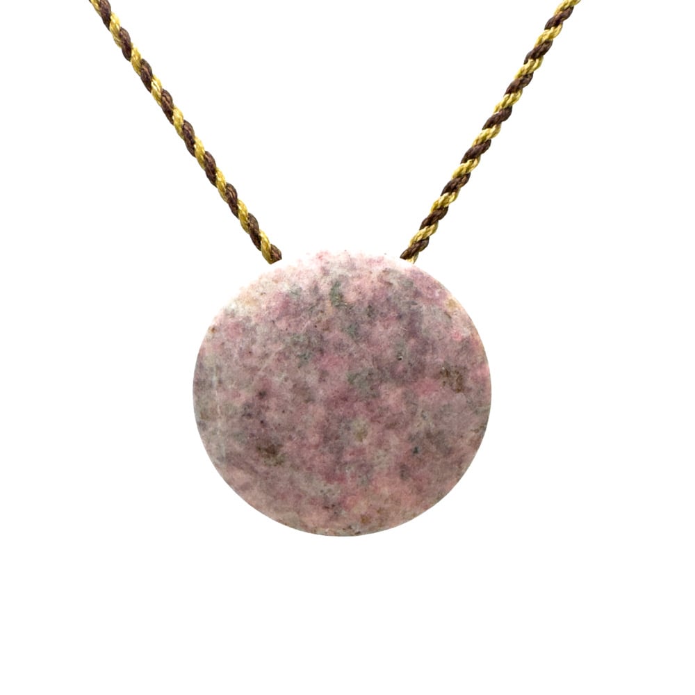 Soft tones of rose, lilac and warm stone move gently through this rounded kopae form — a calm, steady presence against the skin. Thulite carries a gentle heart energy; a stone known for supporting the release of old patterns, healing past trauma, and helping the wearer break cycles that no longer serve.