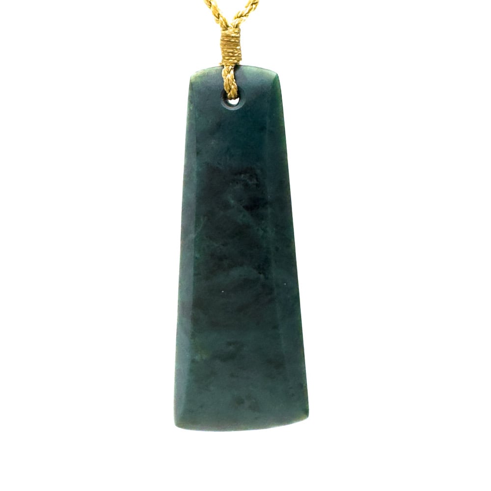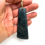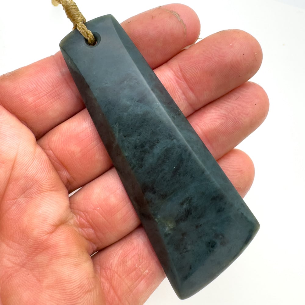 Carved from deep blue nephrite, this toki holds weight and presence, without being a burden around the neck. The stone has clean grain and deep contrasts amongst the woven crystal matrix.